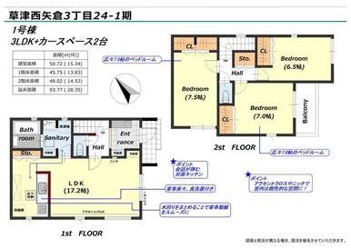 新築売戸建住宅 草津市 西矢倉3丁目 (南草津駅) 2階建 3LDK
