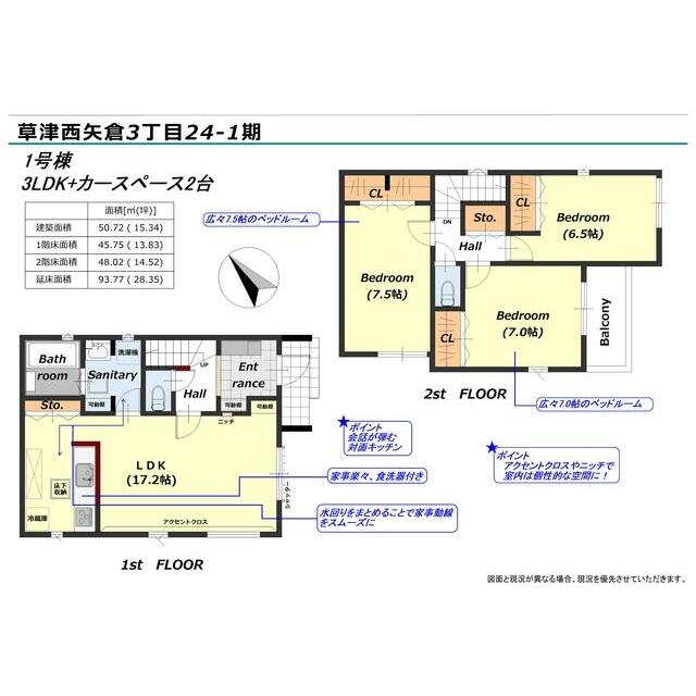 建物面積 | 93.77㎡ | 土地面積 | 実測 117.32㎡ |